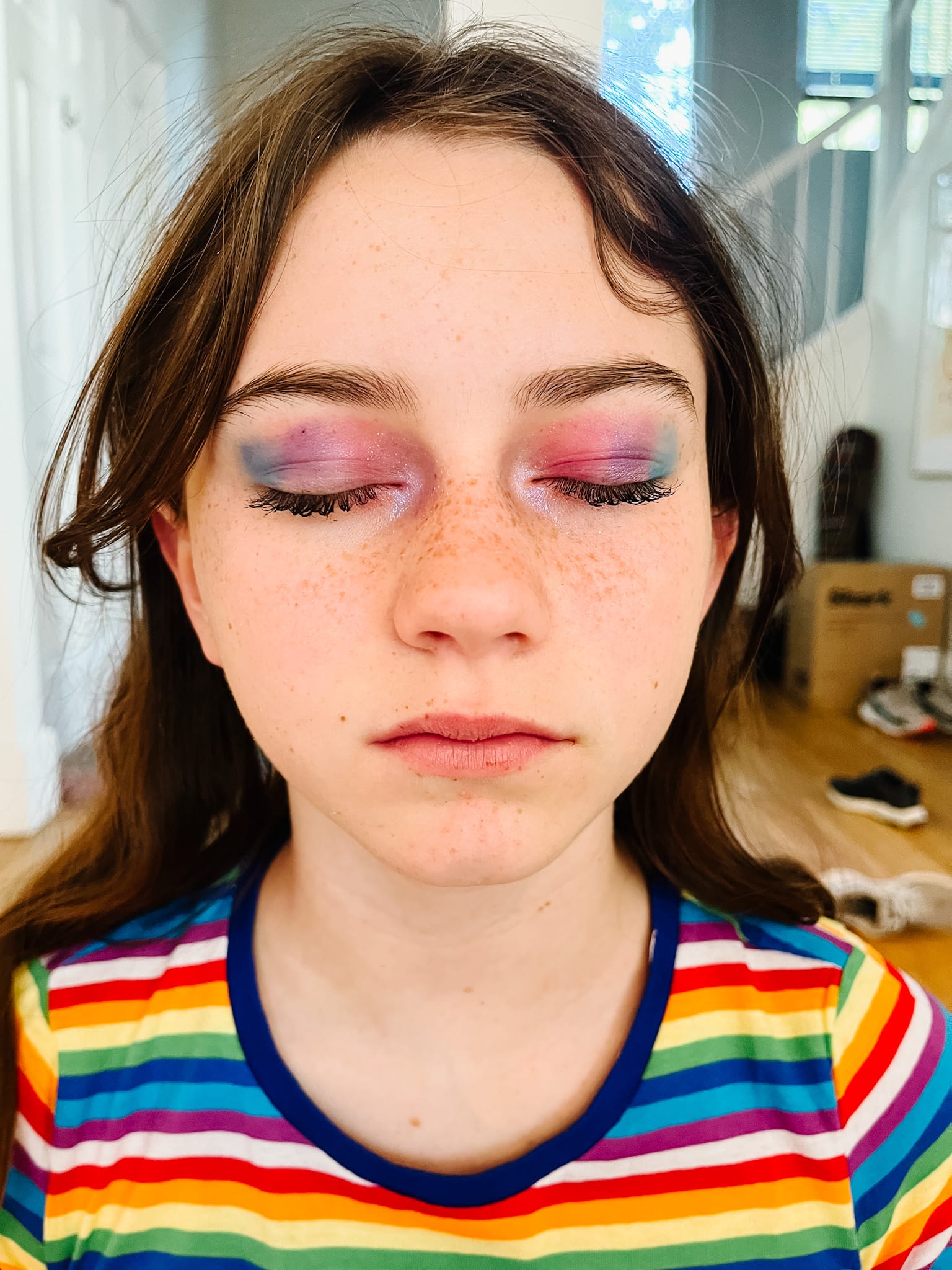 Before Pride, Margaret did Viola's rainbow eyeshadow and mascara.
