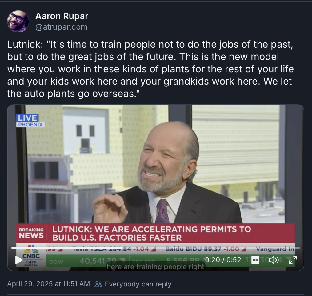 Now that we have that out of the way. What does Lutnick mean by jobs of the past and future? Whose past? Whose future?