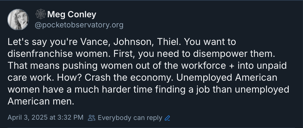 For now, I want to emphasize that these men are not saying Americans can do with less because they want to reduce the kind of consumption that hurts workers and the environment. We know they are not concerned about because, among many other things, this regime is gutting the EPA and stripping workers of protections. These men are saying Americans can do with less because they want to permanently restrict all choices available to some Americans. This is just how they're getting started.