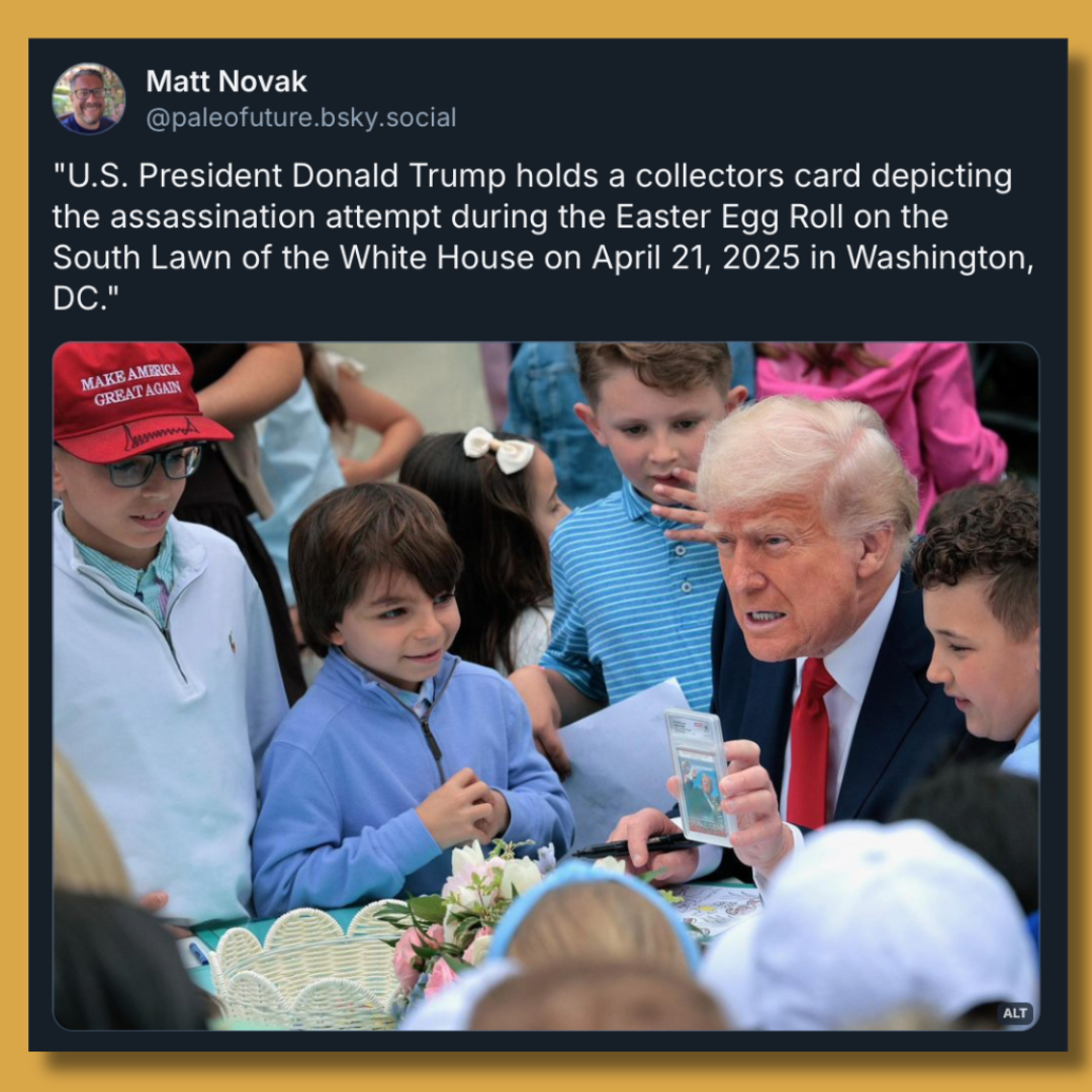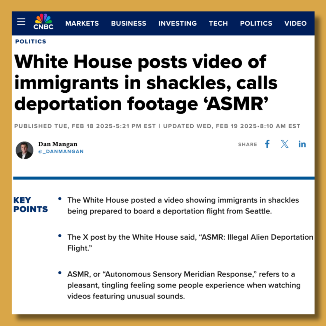 History is Painted by the Victors depicts the abhorrent nature of state violence. The United States government targets children with propaganda that glorifies state violence. The White House posts videos of people in shackles and calls it ASMR. The President of the United States shows children bloody images of himself on Easter. First image link. Second image link.